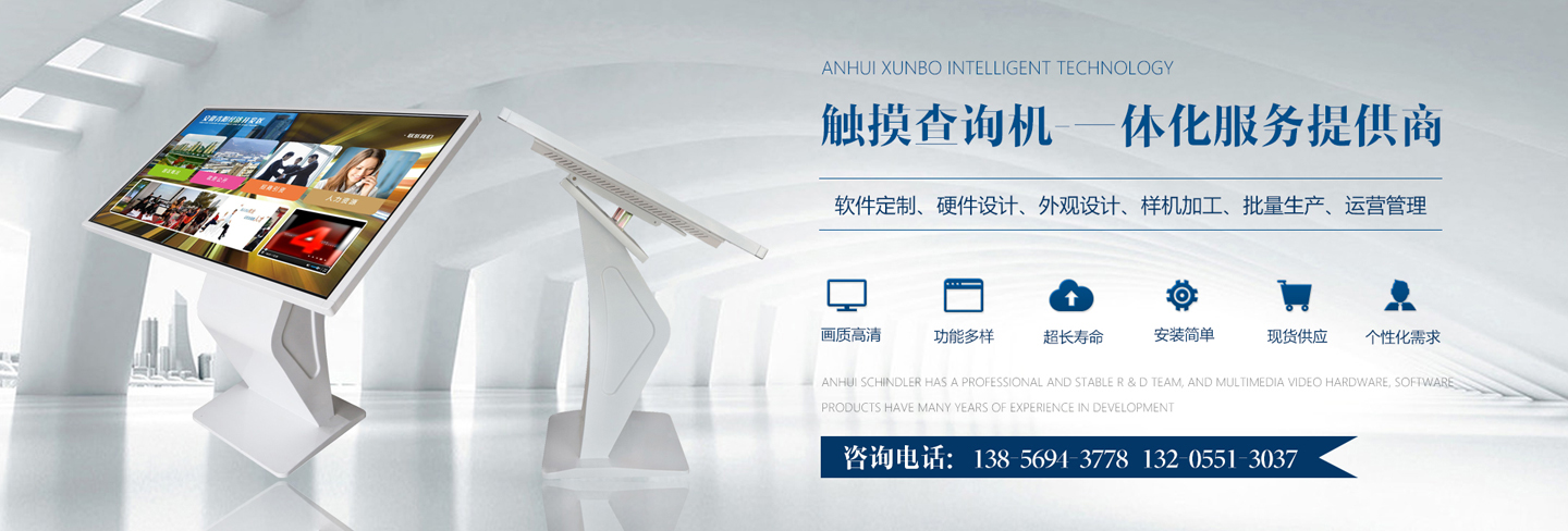 迅博智能 位于中國科教城---合肥市,和經(jīng)濟(jì)開發(fā)區(qū)與高新區(qū)毗鄰,地址合肥市肥西縣湯口路與皋城路交口人民萬福產(chǎn)業(yè)園一期12棟東側(cè),是一家IT領(lǐng)域的高新技術(shù)企業(yè),全心全意服務(wù)于信息化建設(shè),做專業(yè)的信息化提供商,全力打造信息時代新模式。 迅博智能 主要從事觸摸屏、觸摸顯示器、OLED柔性觸摸屏、觸摸查詢一體機(jī)系列產(chǎn)品及觸摸顯示互動體驗軟硬件產(chǎn)品;智能排隊叫號、網(wǎng)上預(yù)約排隊叫號、安康碼皖事通取號系統(tǒng);曲面屏、OLED 屏幕、柔性屏、LCD液晶大屏拼接系統(tǒng);落地式、壁掛式單機(jī)版網(wǎng)絡(luò)版室內(nèi)外廣告機(jī)及數(shù)字標(biāo)牌廣告信息發(fā)布系統(tǒng);室內(nèi)外LED電子格柵透明屏、單雙色、全彩電子大屏;各類辦事營業(yè)廳:公積金...